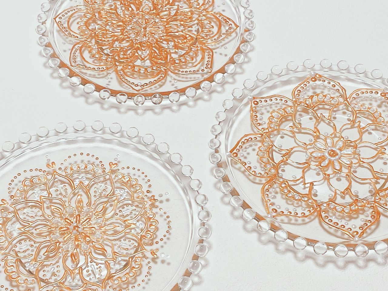 - 〇今話題のモロッカンプレート! 〇ぷっくり描ける特殊なゴールドのペンで華やかな絵柄をガラス皿に描きます。 〇はじめての方も大歓迎♪ 〇姫路観光のお立ち寄りにもオススメ♪
