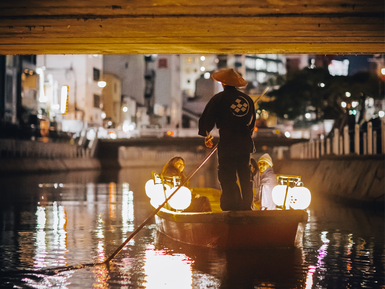 - 【予約なしでもOK!】 20分・1,500円で博多の歴史と風情を満喫できる、気軽な水上散歩!中洲の街を和船で散策! 船上から中洲の景観を眺め、船頭さんによる観光案内で博多の歴史に触れる。
