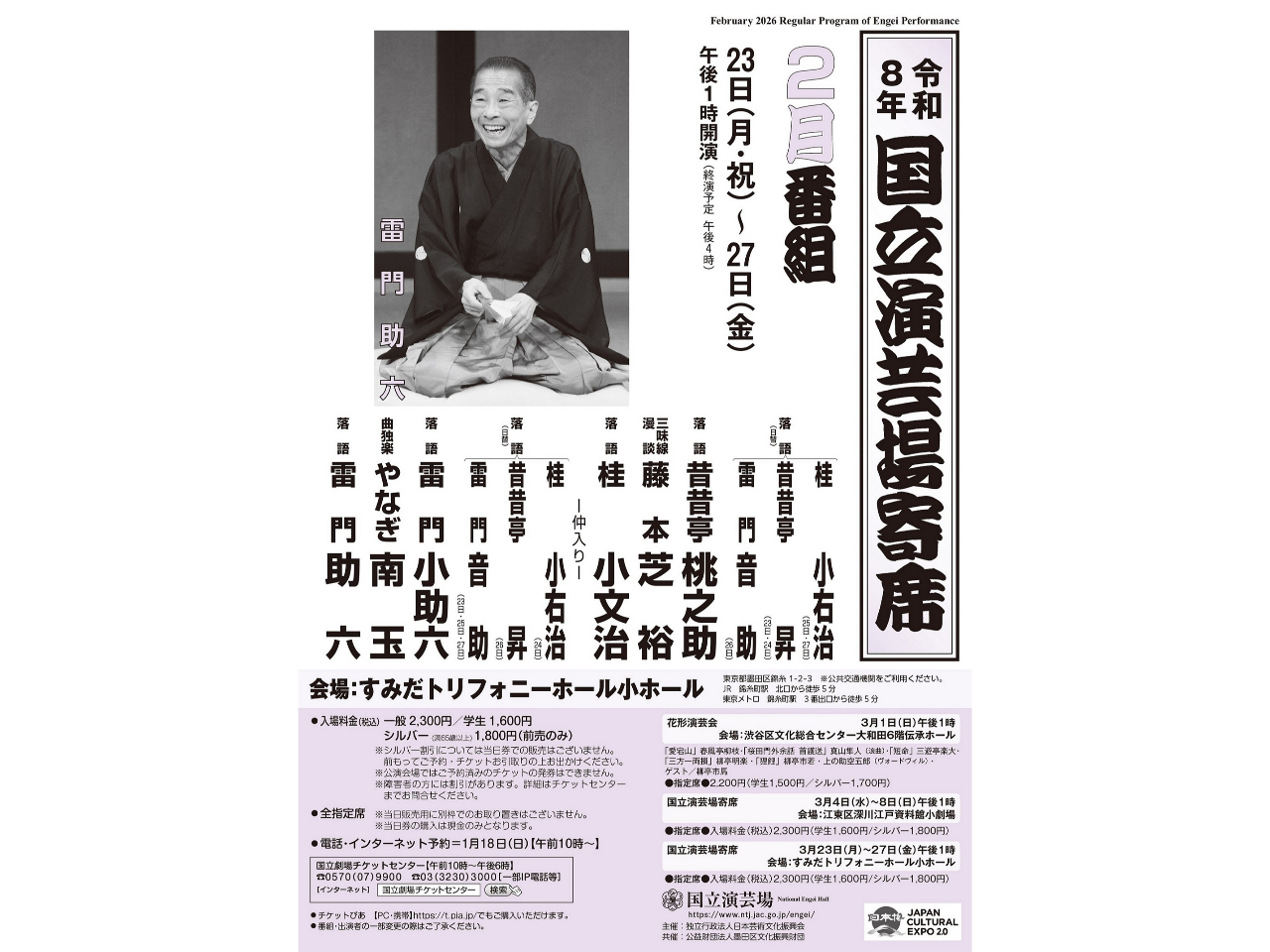 - 寄席の話芸を楽しもう!国立演芸場寄席@すみだトリフォニーホール小ホール(錦糸町)