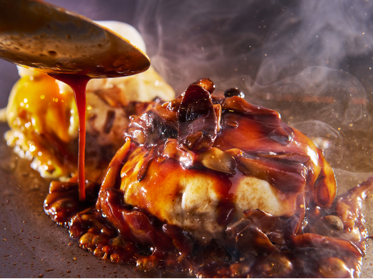 - 週末は都会を離れ、大自然に佇むウェスティン ルスツリゾートで心と身体をリセット。鉄板焼き「風花」カウンター席目の前で焼き上げる白老和牛×ルスツ高原豚ハンバーグ堪能後は自慢の温泉でお肌も心もピカピカに!
