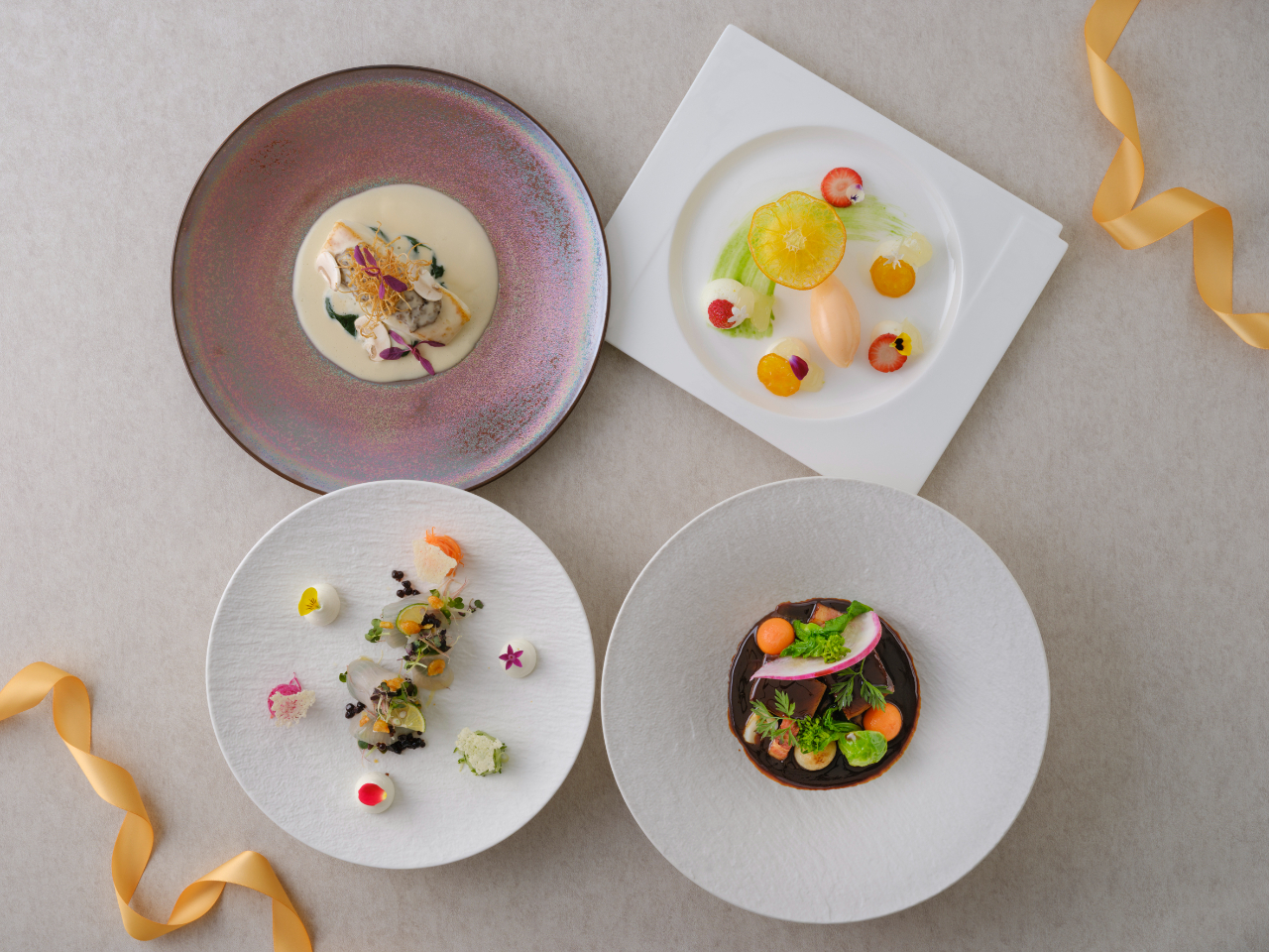 - 山口雅美シェフ監修 「和イタリアン」 和のだしや食材の旨味を活かしながらイタリアンならではの調理法と彩りで仕上げた逸品の数々。 ここでしか味わえない「和×イタリアン」を心ゆくまでお楽しみください。