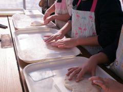 - 麦音のパン職人から十勝産小麦の特徴などを教えてもらい、手軽に本格的なピザ作りを体験します。