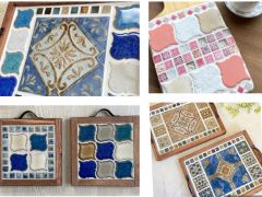 - お好みのタイルを選んで、組み合わせオリジナルのトレーやウォールミラー、鍋敷きなどを作ることができます。