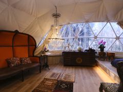 - 直径7Mのドーム型テント内に どっしりとしたアンティーク家具が配置された落ち着いた雰囲気のお部屋です。 シャワーやトイレキッチン、BBQスペース付き!サウナもあります★