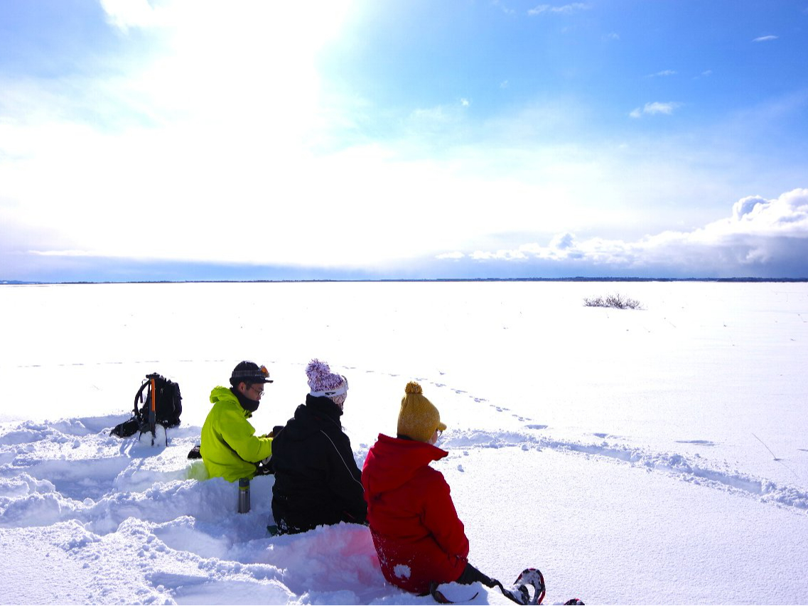 - 「スキー」と「スノーシュー」の良いところ取りをした道具「スキーシュー」で行くツアー! 冬は氷が張っているパンケ沼を目指して歩きます♪ とにかく広い、銀世界をお楽しみください。