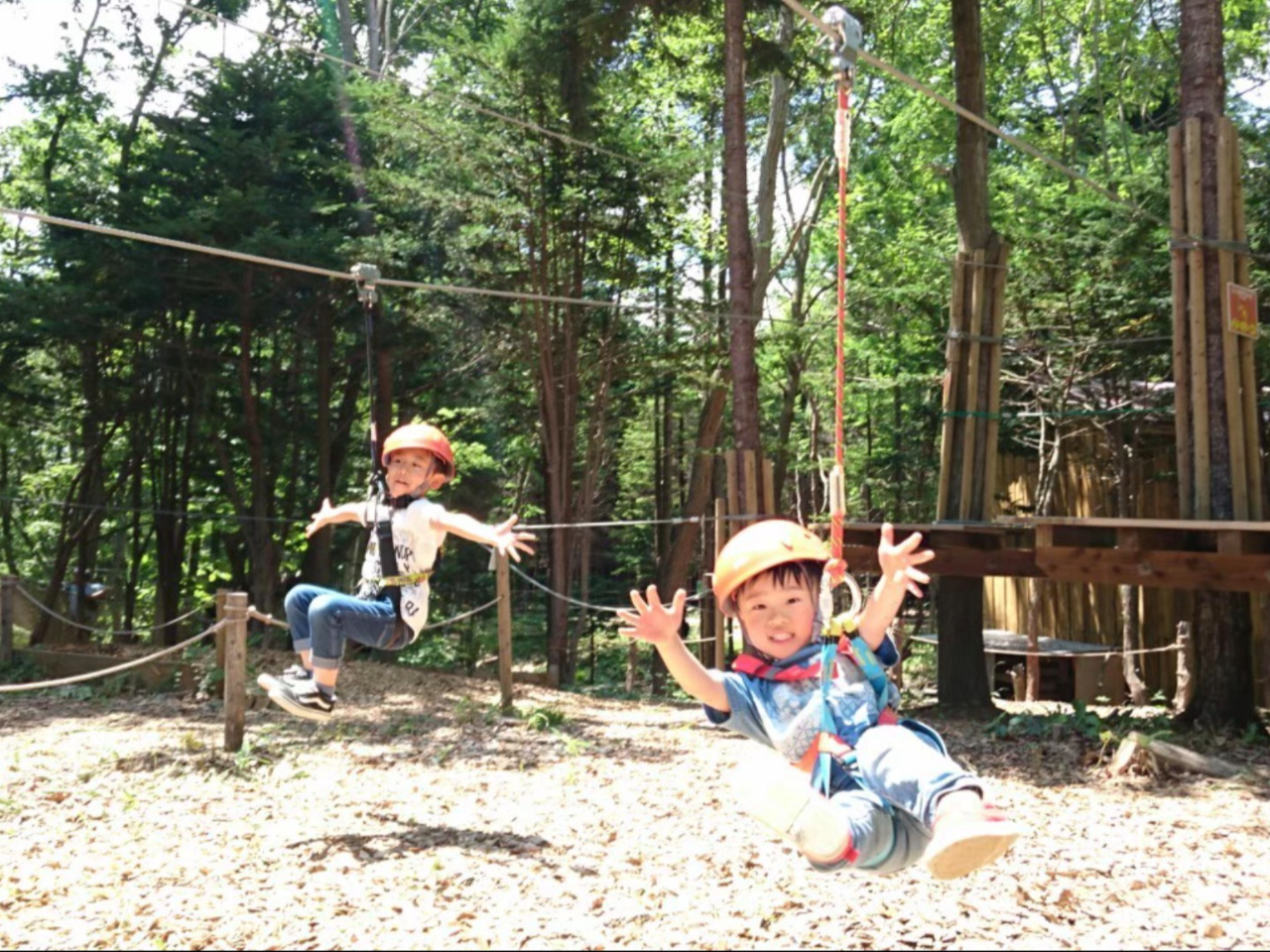 - ★限定ステッカープレゼント★ 身長90p以上から小学3年生までご利用できます! 樹上1〜2mの高さのコースをハーネスを付けた状態で安全に遊べます。フォレストアドベンチャーが初めてのお子さんにぴったり!