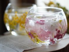- □たくさんのお花の中から、プリザーブドフラワーやドライフラワーを選び かわいい素敵なキャンドルホルダーが作れます □キャンドルを灯してみたり、小物入れにしてもお使いできます