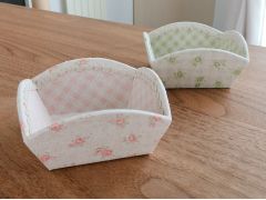 - 厚紙を組み立てて布や紙等を貼りつけて仕上げるフランスの伝統工芸・カルトナージュ。インテリアやプレゼントにぴったり。入門講座の作品の中からお好きなものを作っていただけます。