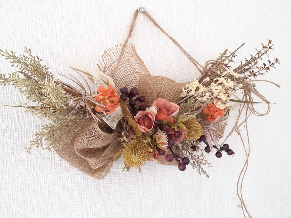 - ●少ない花材でボリュームアップ術!大人壁掛けアレンジに挑戦してみませんか。 ●フラワーハンギング(壁掛)