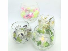 - まるでお水に生けているようにお花で彩ったキャンドルホルダー。 LEDライトやティーキャンドルを入れて灯せば、優しく揺らめきますよ♪ スタッフが丁寧に指導いたしますので、気軽にチャレンジ♪