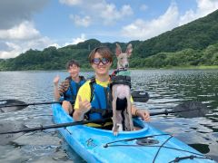 - 【福島・飯坂温泉】ペットと一緒プラン!水源地のダム湖でカヤック体験