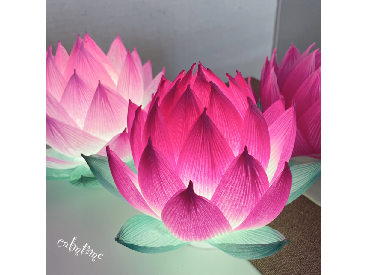 - 夏の早朝、水面に花を咲かせる蓮の花をペーパークラフトで表現します 出来上がった蓮の花の下にLEDキャンドルを灯すのがおススメです