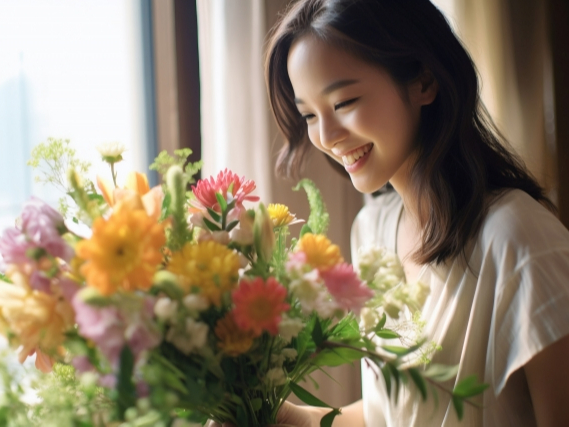 - お部屋に飾るだけでいつもの空間がたちまち素敵に! お花に触れることで癒されて心豊かになります。