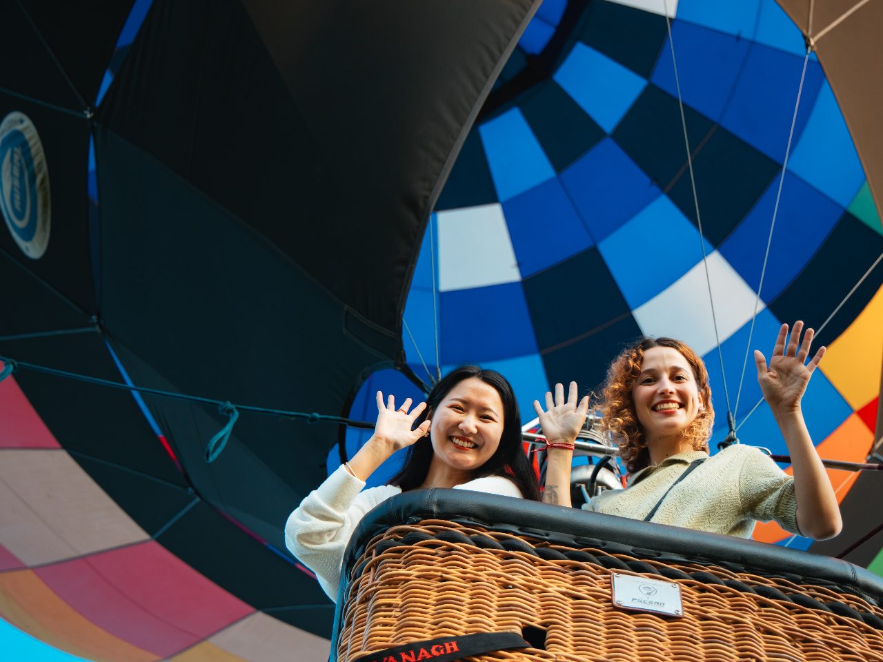 - 貸切熱気球で、これ以上ないプライベート感にひたりながら家族や恋人、友人だけとの空中散歩を存分にお楽しみください。