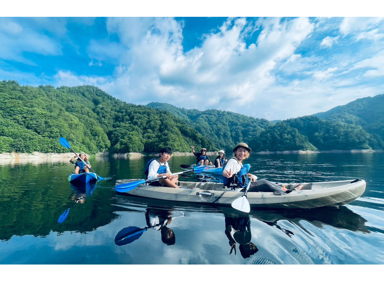 - 奥四万湖でのカヌーツアーは弊社のみ! 常に貸切の青の世界。 奥四万湖より上流は民家はもちろん施設は一切ないので100%ナチュラルウォーター 非日常を体験してください。