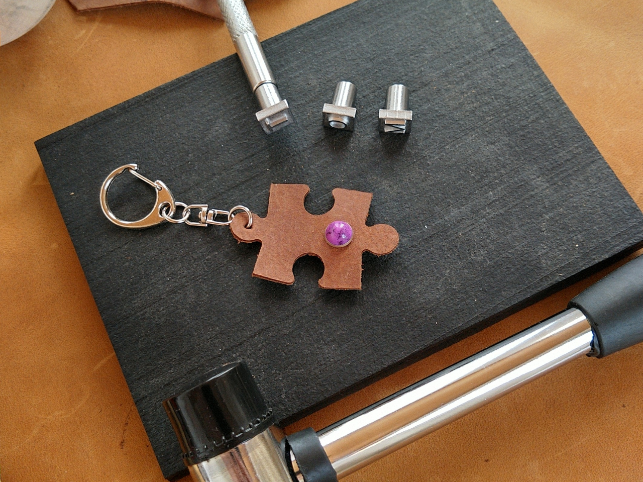 - 手ぶらでOK! ☆牛革レザーを型抜きして、チャームを作ろう☆ アクセントに飾り鋲(びょう)を付けたり、文字を入れたり ♪カスタム可能♪ ♪自分だけのレザーチャームを作ちゃおう♪