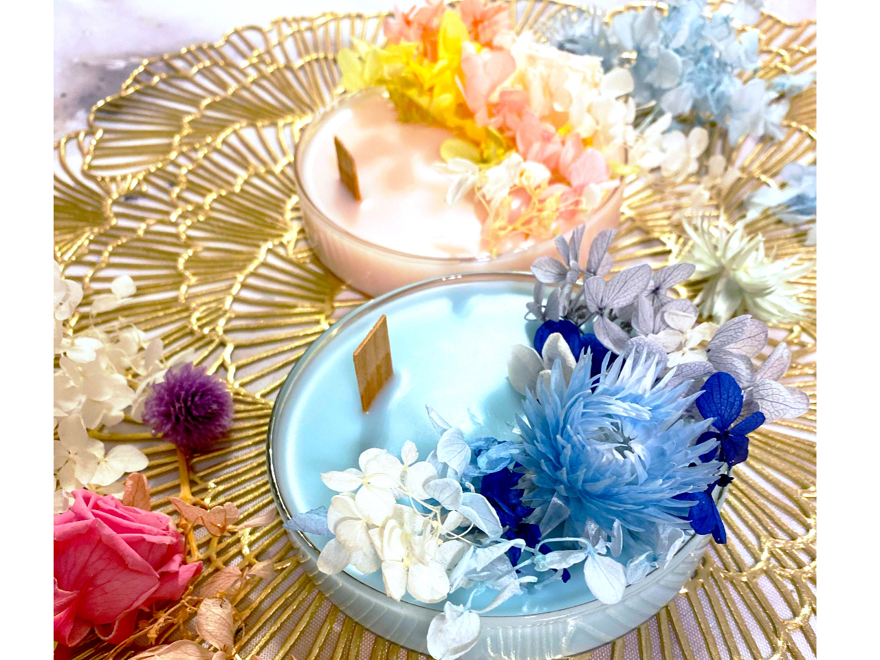 - 【カップルや友人同士お勧め】ドライフラワーをアレンジ、ブルームキャンドルSサイズ