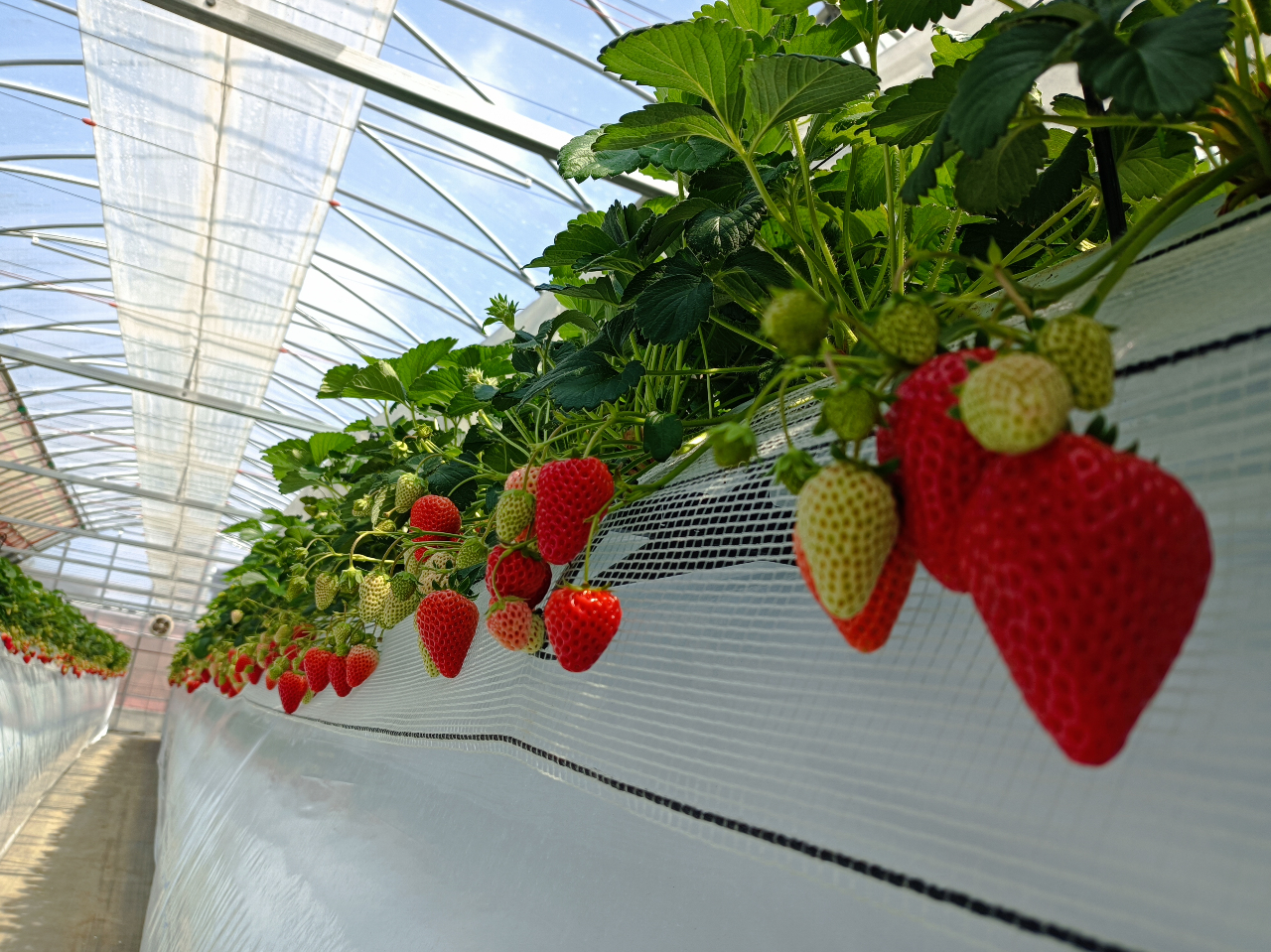 - ■甘さと品質に自信アリ!きれいな栽培環境で元気に育ったいちごです♪ ■上段と下段にそれぞれいちごがなっているため、小さなお子様にもオススメ! ■通路幅が広いため、車椅子の方にもお楽しみいただけます!