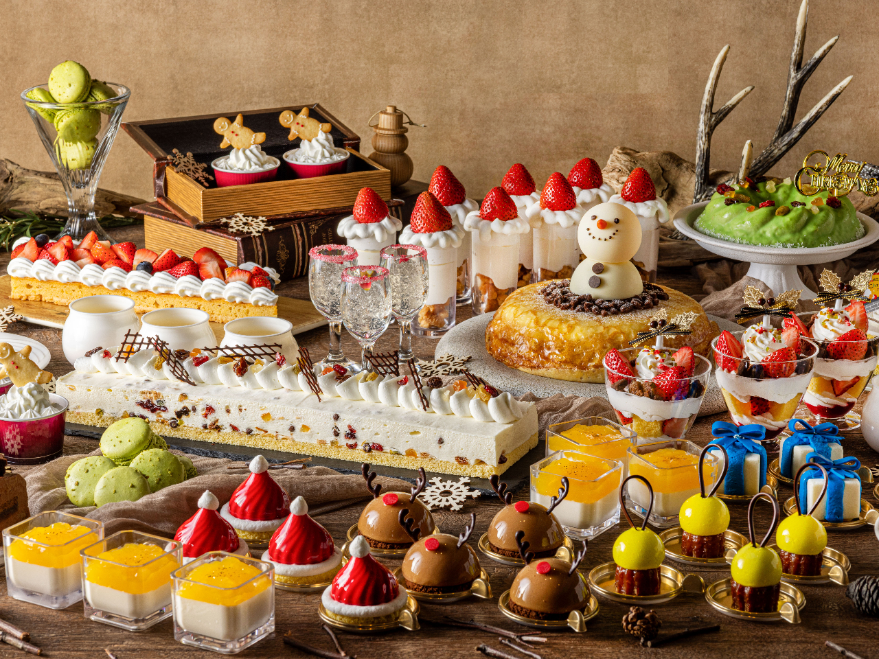 - 華やかなスイーツが盛りだくさんのこのプランは、幸せな気持ちに包まれる素敵な時間を提供します。スイーツの他にも、心温まるフードメニューやドリンクが用意いたしました。