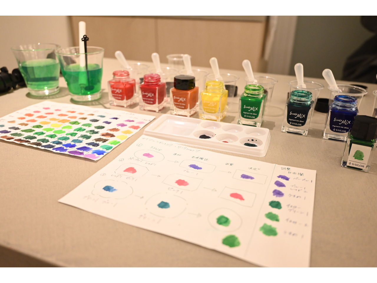 - 「インクブレンドワークショップ」は、 自分で万年筆インクをブレンドし、 お気に入りの一色をミニボトルに詰めてお持ち帰り頂けるワークショップです!