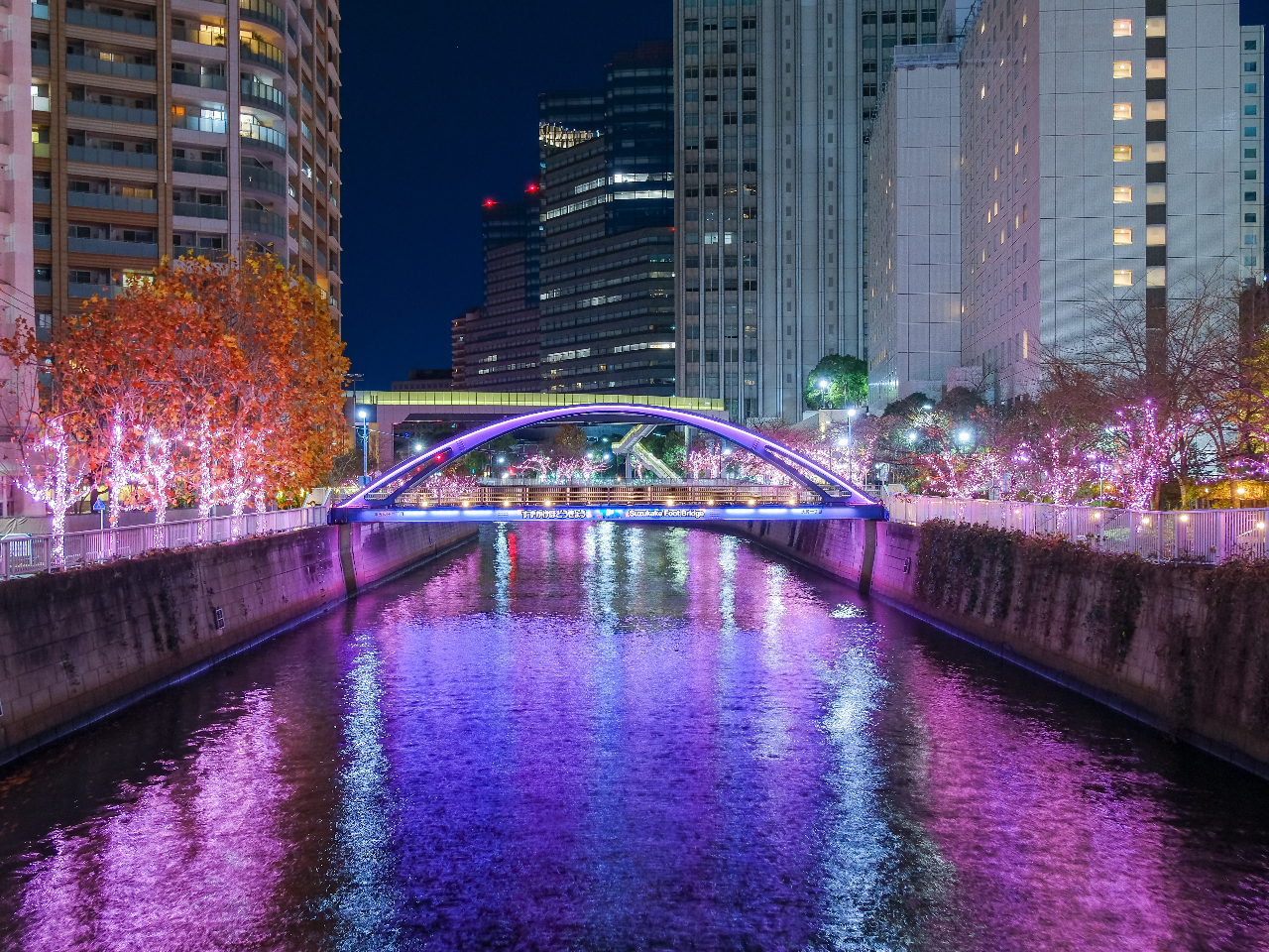 - 目黒川のイルミネーションを船上からお楽しみ後に東京湾に出てナイトクルーズをご堪能ください。 クライマックスで「お台場レインボー花火」を観覧する、クリスマス前後のイルミネーション&花火大会クルーズです!