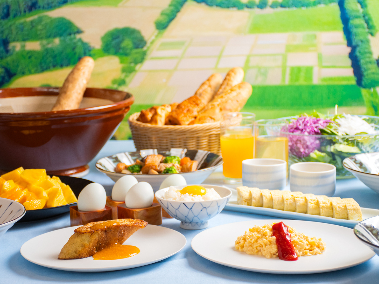 - ライブキッチンでお作りする、ブランド卵を使用したフレンチトーストが人気!東北牧場の旬食材を楽しむ東北牧場コーナーに加え、野草のデザートや人気の野草茶など、40種類以上のメニューをお楽しみいただけます。