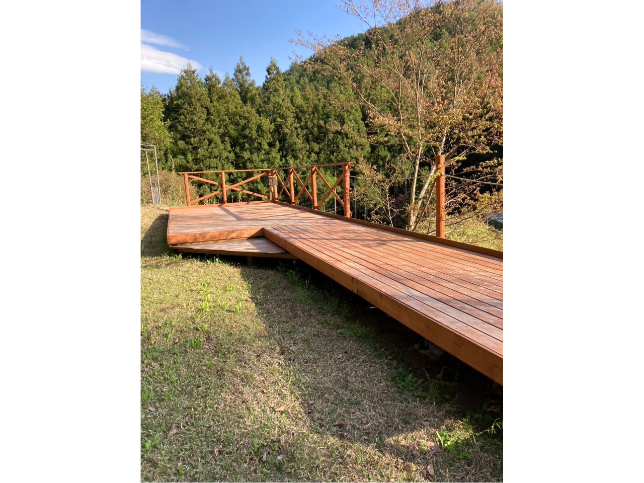 - ・青梅市デイキャンプ ・大人数でも広く楽しめるウッドデッキのサイトです♪ お申し込みは1件で15名様までご利用いただけます。 ・共有スペースに男女別個室温水トイレ完備!