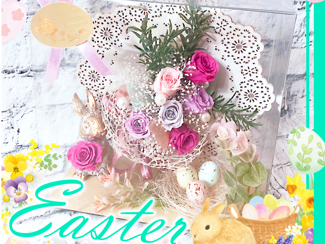 - ミニブーケはクリアBOXの中に入れたままでも、壁掛けにしても飾れる2wayタイプ。 イースターラビットと、パステルエッグが可愛らしい♪大切な方への贈り物にも。 制作後のティータイムも楽しんで♪