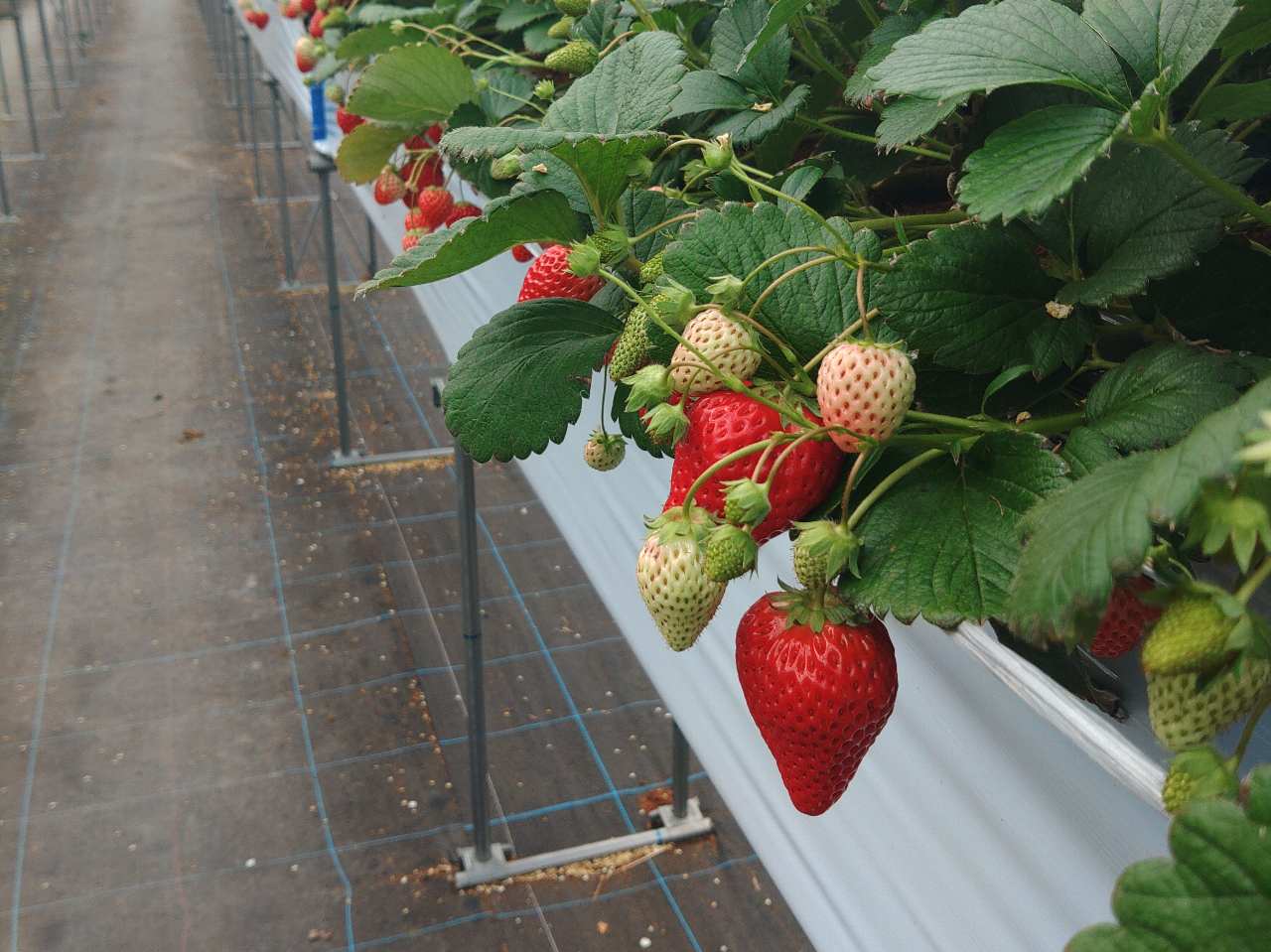 ハウス内は立ったままいちご狩りが出来るように高設栽培を全面設置。 通路が広くベビーカーや車いすのお客様も安心して入園して頂けます♪ 紅ほっぺ・おいCベリー・よつぼし・あ...