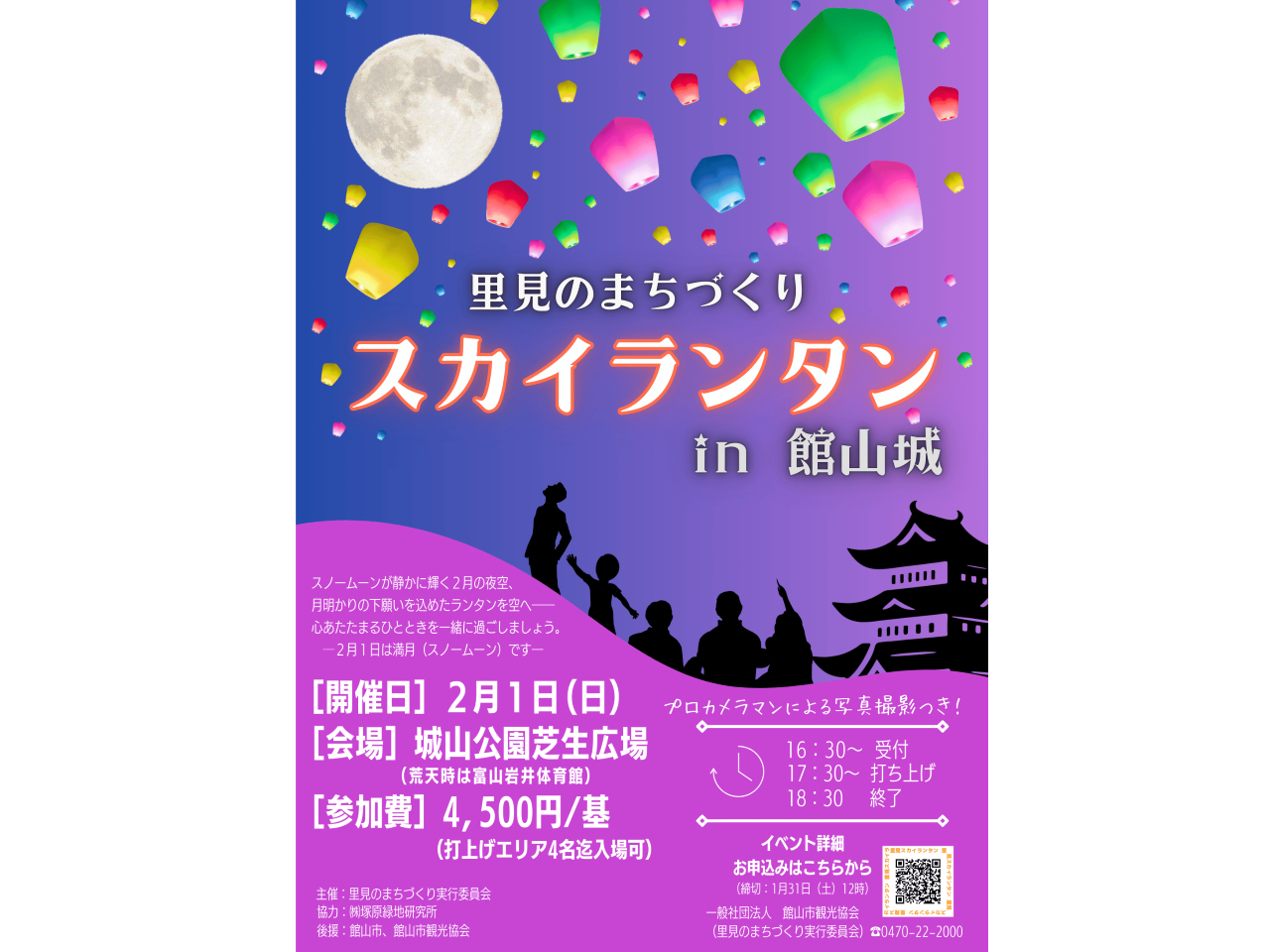 - 南総里見八犬伝のロマン漂う夜空へ願いを込めたランタンが天守閣に向かって舞い上がる幻想的なひととき。2/1は満月(スノームーン)…大切な人と特別な夜を。プロカメラマン撮影の写真データ付プラン