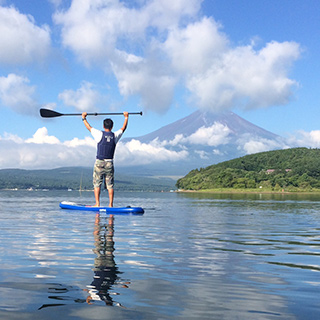 - 富士山の麓・山中湖上散歩。誰でも簡単にできるスタンダップパドル! ボード、パドル、ウェットスーツ、ライフジャケット等のレンタル一式付き★ ●お一人様:4,000円/120分