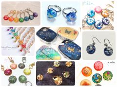 - お好きなビジュー、材料を使い、レジン液で固めるオリジナルのアクセサリーをつくりましょう。ご自分にも、ギフトにも嬉しいですね☆