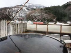 - 姫川の清流沿いをのんびり走る大糸線を眺めながら入浴できる露天風呂を貸切! 当館の自慢は全て源泉100%かけ流しの豊富な湯量をいかしたお風呂でございます。