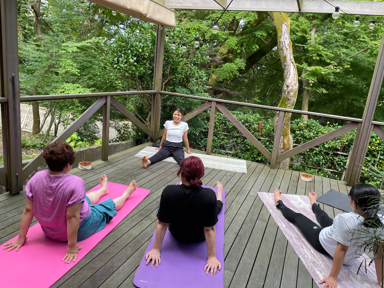 - 足羽山の森の中。気持ちのよい朝の日差しを浴びながら、おしゃれなカフェのデッキでヨガを楽しみませんか!ハープの生演奏の音色で、心も身体もリラックス。講師先生アドバイスの美味しい朝食も楽しみ!
