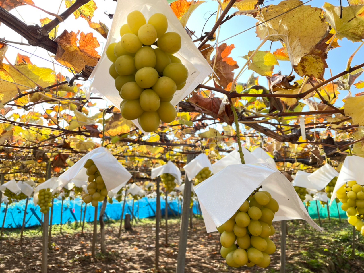 - 様々なぶどうの品種の中でも人気な”シャインマスカット”をもぎ取って食べよう♪ 期間延長&入園料お値引きしました! 完熟シャインマスカットをお召し上がりください!!