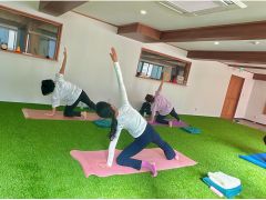 - 河口湖畔・富士山麓の人工芝スタジオで癒しのヨガ体験!