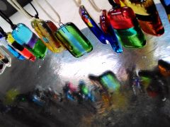 - お好きな色ガラスのカケラを使って、世界に一つだけの小物やアクセサリーを創ろう♪ 専用の電気炉で焼成しガラスを溶着させます。ピアスやイヤリング、ペンダントにもなります♪