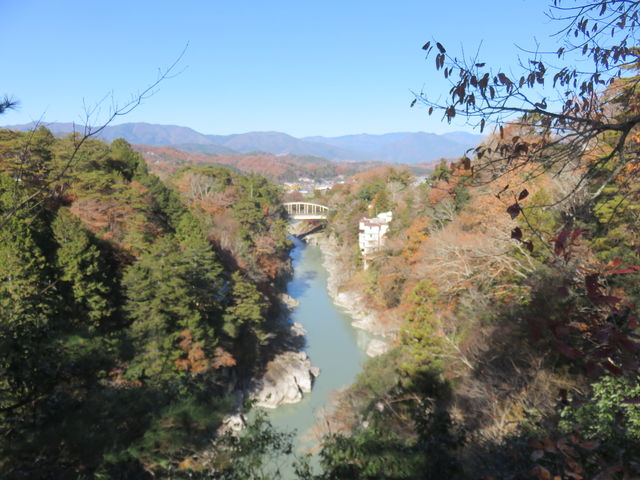 秋のおわりと冬のはじまり感じる 天竜峡 紅葉が落ち葉になって残り 朝晩の冷え込みと干し柿が 冬の...