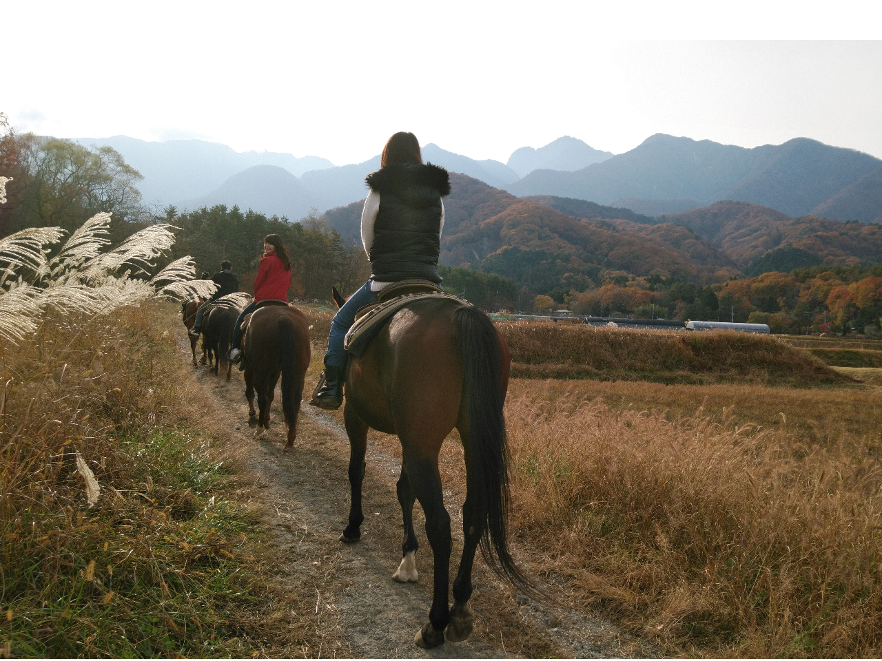 - 初心者の方、経験者の方いずれもご参加大歓迎です。 南アルプスと八ヶ岳の間、標高1,000mに位置する「馬の町」小淵沢で美しいアラブ馬に乗る特別な体験をしてみませんか?