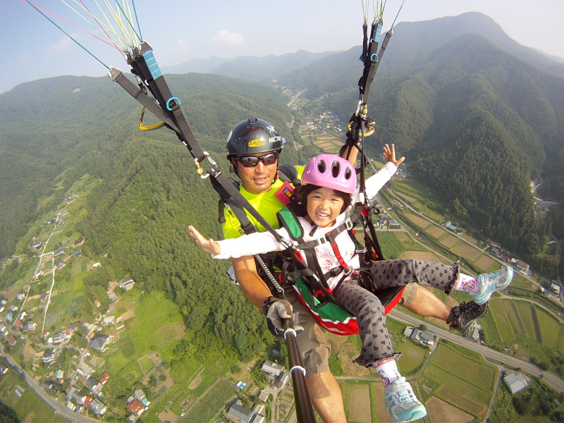 - インストラクターと一緒に飛ぶ、浮遊体験タンデムコースです。小さなお子様から、おじいさんおばあさんまで。軽くジョギングできる方であれば、どなたでも可能です! LET'S FLY!!