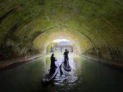 - 9歳以下のこどもが大人のSUPに同乗できるプラン 巨大な大岩、国内でも珍しい水上トンネル、文化財の久米路橋や滝、数十メートルの高さの崖が広がる景色など見どころ沢山のコースをご案内します。