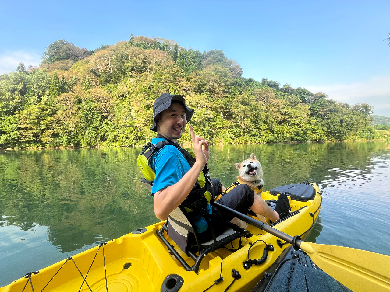 - +2500円で愛犬と一緒に二人乗りカヤックツアー体験