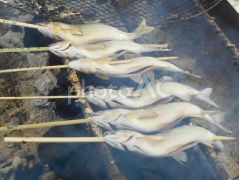 - みんなで協力してアマゴを捕まえよう! 捕まえたアマゴを塩焼きにしてみんなで食べよう。とても美味しいよ!!