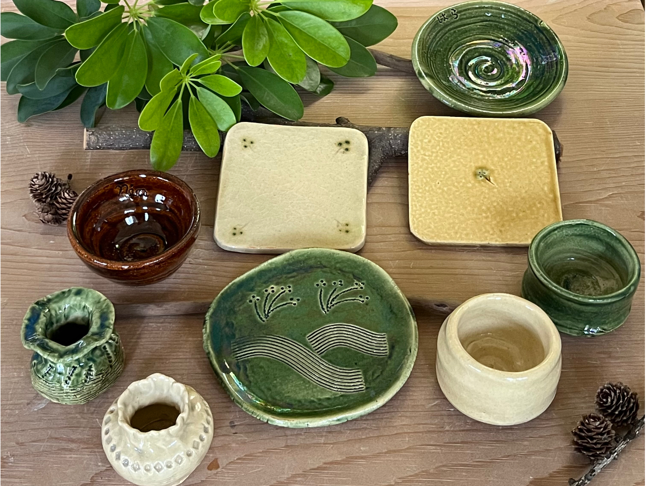 - お皿、カップ、小鉢など、自分だけのお気に入りの器が作れます。 陶芸で同級会、陶芸で親睦会は、いかがですか? 大人数にも対応出来ます