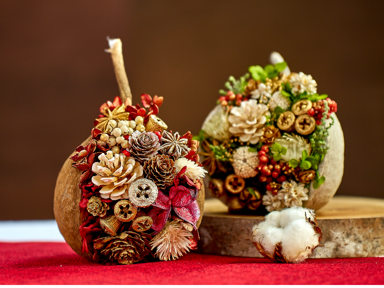 - ころんとかわいいフォルムが魅力なブッダナッツ。 自然素材の実の殻に、プリザーブドフラワーや木の実を自由にアレンジすれば、お部屋が季節感いっぱいに彩るインテリアに。