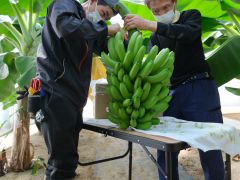 - ・バナナハウス内で栽培について場長が案内 ・収穫適期バナナの収穫体験 ・予め収穫追熟度の異なるバナナの食べ比べ ・金太郎バナナジュース又はバナナアイスの試飲・試食 ・お持帰りバナナ1本