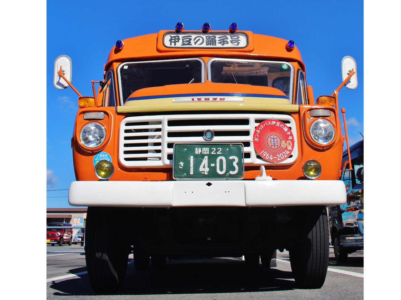 - 1964年(昭和39年)式の本物のボンネットバス。映画やドラマの撮影にも使用された昭和レトロなボンネットバス「伊豆の踊子号」