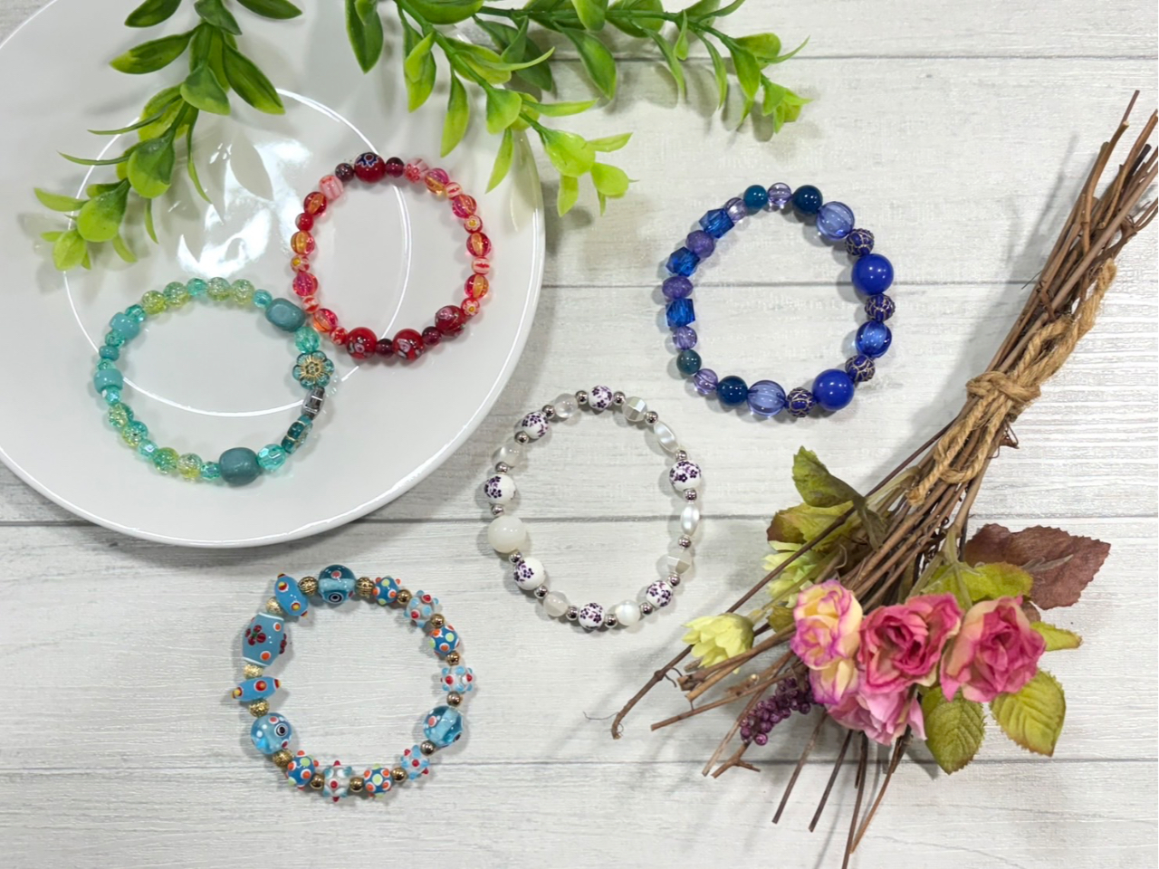 - ◎数十種類のパワーストーンとガラスビーズを組み合わせて、世界にひとつしかない素敵なブレスレットを作りましょう♪