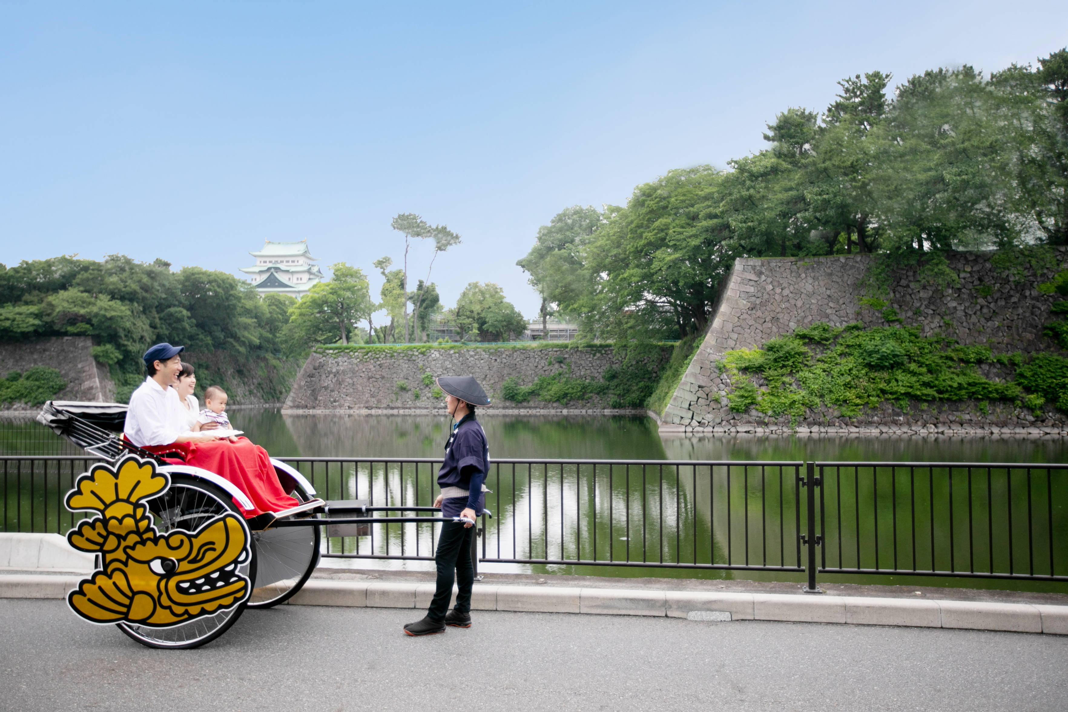 - ☆名古屋人力車は、車輪の大きな金シャチが目印☆ 名古屋城の外堀をぐるっと一周ご案内♪(じゃらんご予約のアレンジコース) 名所・旧跡など、外堀からみた名古屋城を、ガイドも交えて案内させて頂きます。