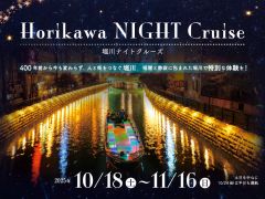 - ■400年前から変わらず人と街をつなぐ堀川。 ■期間限定のナイトクルーズでワクワクの体験を!! ■乗船中は、ブラックライト使用した謎解きがあるので、楽しく参加できます! ★お子様への割引や学生割引有★